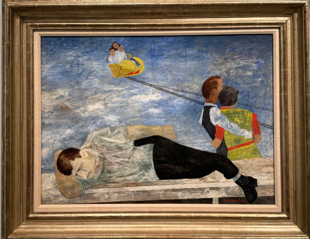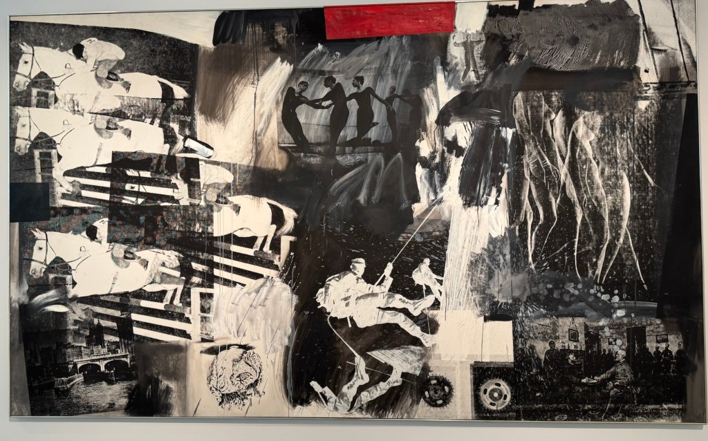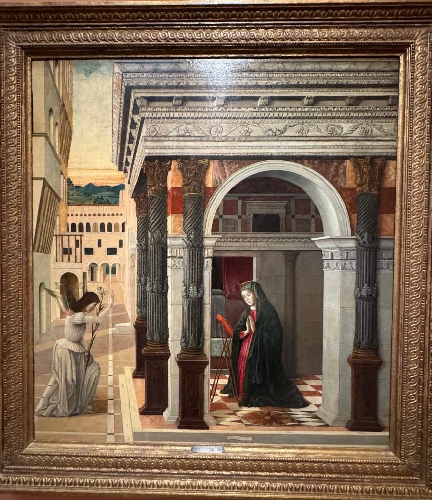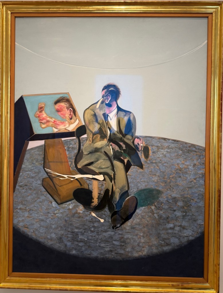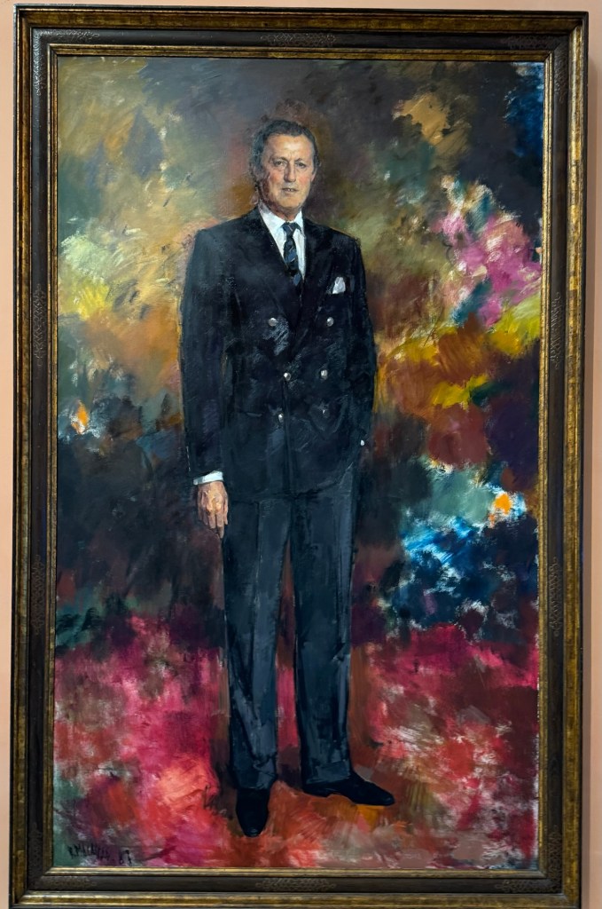 entranceKing Juan Carlos I At time of opening of the galleryQueen Sofia at the opening of the galleryBaron Thyssen-BornemiszaBaroness Thyssen-BornemiszaAnon, The Virgin Annunciate, 1360-80Gerard David, The Crucifixion, 1475Master of the Magdalen Legend, Man as St Andrew, 1480Bramantino, The Risen Christ, 1490Hans Memling, Portrait of a Young Man praying, 1490Hans Holborn, Henry VIII, 1537Domenico Ghirlandaio, Giovanna degli Albizza Tournabouni, 1489-90Gentile Bellini, The Annunciation, 1475Bronzino, Portrait of a Young Man as St Sebastian, 1533Vittore Carpaccio, Portrait of a Knight in a Landscape, 1505Hans Burgkmair, Christ’s body is carried to the Tomb, 1520Alberto Durero, Jesus among the Doctors, 1506Hand Baldung Gruen, Adam and Eve, 1531El Greco , The Annunciation, 1576Claudio de Laurena, Pastoral Landscape with the Flight to Egypt, 1663Zurbarán, Christ on the Cross, 1630Francesco Guardi, The Grand Canal with San Simeone Piccolo and San Lucia, 1780Canaletto, The Grand Canal from San Vito, Venice 1723-4Canaletto, The Piazza San Marco in Venice, 1723-4Van Goyen, A river estuary with ‘smalschips’, fishermen, and cattle watering, 1651 Van Goyen, Winter landscape with figures on the ice, 1643Peeter Neeffs I, Interior of a Gothic Church, 1615-6Gerrit Dou, A young woman with a candle at the window, 1558-65Edgar Degas, Swaying Ballerina (Dancer in Green), 1877-9Camille Pissarro, Rue Saint Honoré in the afternoon, Effect of Rain, 1897Edward Munch, Bay with boat and house, 1881Édouard Manet, Horsewoman- full face (L’Amazone), 1882André Derain, Waterloo Bridge, 1906Elon Schiele, Houses on the river (the old town), 1914Vincent Van Gough, Les Vessenots in Auvers, 1890Emile Nolde, Autumn Evening, 1924Ernst Ludwig Kirshner, Fränzi in front of curved chair, 1910Franz Marc, The Dream, 1912Lyonel Feininger, Architecture II (the man from Putin), 1921Wasilly Kandinsky, Murnau, top of the Johannisstrausse, 1908Emile Nolde, Glowing Sunflowers, 1936František Kupka, Study for the Language of Verticals, 1911Wasilly Kandinsky, Picture with three spots No. 196, 1914Max Weber, Grand Central Terminal, 1915Marc Chagall, TheMadonna of the Village, 1938-42Joan Miro, Catalan peasant with guitar, 1924Salvatore Dali, Dreamcaused by flight of a bee around a pomegranate, a second before waking up, 1944Salvatore Dali, Gravida rediscovers the anthropomorphic ruins, 1932Paublo Picasso, Bullfight, 1934Balthus, The Card Game, 1948-50Christian Schad, Portrait of Dr Haustein, 1938Otto Dix, Hugo Eufurth with dog, 1936Edward Hopper, HotelRoom, 1931Andrew Wyeth, My Young Friend, 1070Jackson Pollack, Brown and Silver I, 1951Georgia O’Keeffe, Abstraction. Blind I, 1921Mark Rothco, Untitled. (Green on maroon), 1961Robert Rauschenberg, Express, 1963Lucien Freud, Maninchair (Baron H H Thyssen-Bornemisza, 1985Frank Auerbach, Head of of JYM, 1978Francis Bacon, Portrait of George Dyerin a mirror, 1968Lucian Freud, Reflection with two children (self portrait) 1965Alberto Giacometti, The Glade, 1950Alberto Giacometti , Portrait of a woman (Rita?) , 1965 Nicholas de Staël Grey composition, 1948, Karel Appel, Wild Horses, 19574Frank Auerbach, The Shell Building site from the Thames, 1957Ben Shahn, Carnival, 1957Bertrand Mendel, Lucky Dragon, 2009Richard Lindner, Moon over Alabama, 1963Roy Lichtenstein, Woman in Bath, 1963David Hockney, In memorandum of Cecchino Bracci, 1962László Moholy-Nagy, Circle segments, 1921Irma Álvarez_Laviada, Sampler I, 2000Irma Álvarez_Laviade, Too Pink for a Merzbilt (installation) 2026Irma Álvarez_Laviada, Sampler II, 2000Exhibition