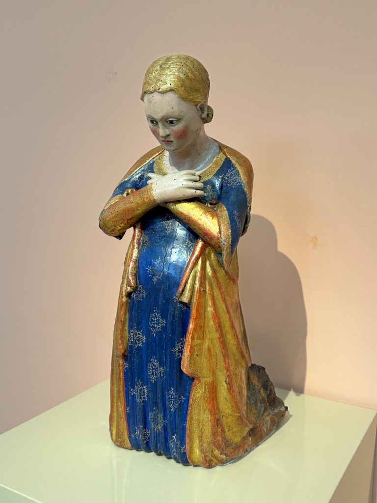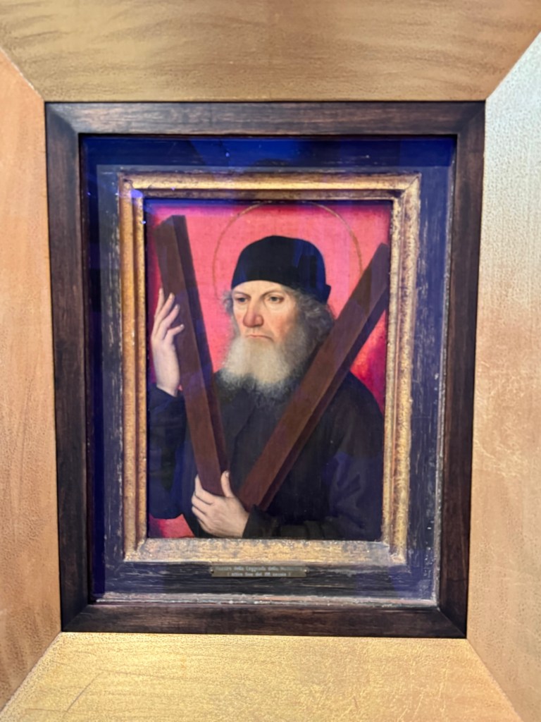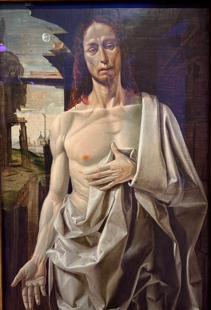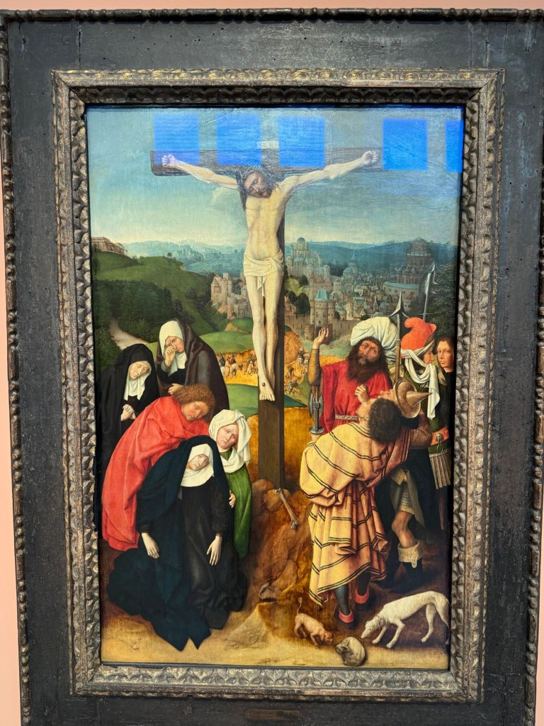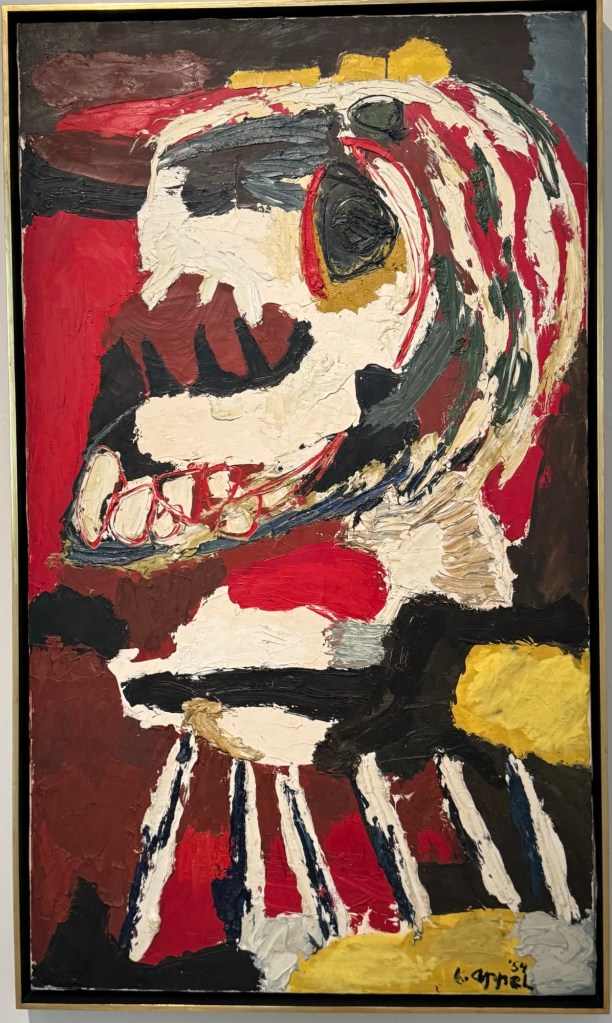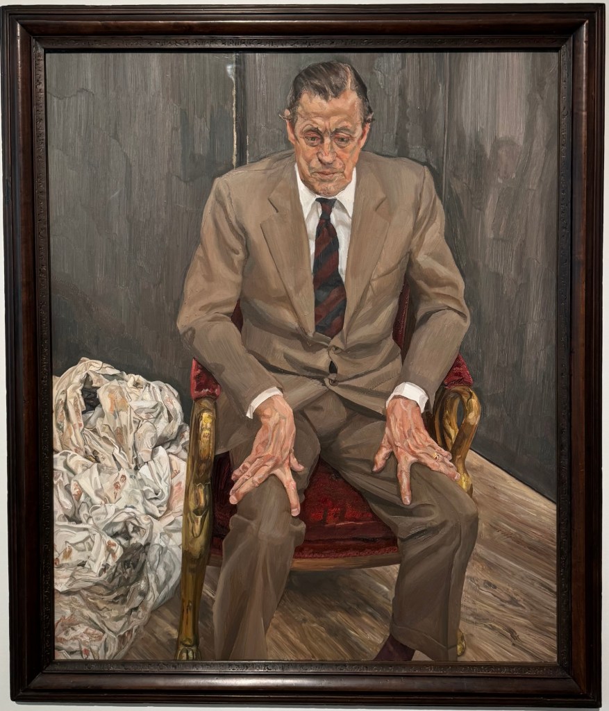 entranceKing Juan Carlos I At time of opening of the galleryQueen Sofia at the opening of the galleryBaron Thyssen-BornemiszaBaroness Thyssen-BornemiszaAnon, The Virgin Annunciate, 1360-80Gerard David, The Crucifixion, 1475Master of the Magdalen Legend, Man as St Andrew, 1480Bramantino, The Risen Christ, 1490Hans Memling, Portrait of a Young Man praying, 1490Hans Holborn, Henry VIII, 1537Domenico Ghirlandaio, Giovanna degli Albizza Tournabouni, 1489-90Gentile Bellini, The Annunciation, 1475Bronzino, Portrait of a Young Man as St Sebastian, 1533Vittore Carpaccio, Portrait of a Knight in a Landscape, 1505Hans Burgkmair, Christ’s body is carried to the Tomb, 1520Alberto Durero, Jesus among the Doctors, 1506Hand Baldung Gruen, Adam and Eve, 1531El Greco , The Annunciation, 1576Claudio de Laurena, Pastoral Landscape with the Flight to Egypt, 1663Zurbarán, Christ on the Cross, 1630Francesco Guardi, The Grand Canal with San Simeone Piccolo and San Lucia, 1780Canaletto, The Grand Canal from San Vito, Venice 1723-4Canaletto, The Piazza San Marco in Venice, 1723-4Van Goyen, A river estuary with ‘smalschips’, fishermen, and cattle watering, 1651 Van Goyen, Winter landscape with figures on the ice, 1643Peeter Neeffs I, Interior of a Gothic Church, 1615-6Gerrit Dou, A young woman with a candle at the window, 1558-65Edgar Degas, Swaying Ballerina (Dancer in Green), 1877-9Camille Pissarro, Rue Saint Honoré in the afternoon, Effect of Rain, 1897Edward Munch, Bay with boat and house, 1881Édouard Manet, Horsewoman- full face (L’Amazone), 1882André Derain, Waterloo Bridge, 1906Elon Schiele, Houses on the river (the old town), 1914Vincent Van Gough, Les Vessenots in Auvers, 1890Emile Nolde, Autumn Evening, 1924Ernst Ludwig Kirshner, Fränzi in front of curved chair, 1910Franz Marc, The Dream, 1912Lyonel Feininger, Architecture II (the man from Putin), 1921Wasilly Kandinsky, Murnau, top of the Johannisstrausse, 1908Emile Nolde, Glowing Sunflowers, 1936František Kupka, Study for the Language of Verticals, 1911Wasilly Kandinsky, Picture with three spots No. 196, 1914Max Weber, Grand Central Terminal, 1915Marc Chagall, TheMadonna of the Village, 1938-42Joan Miro, Catalan peasant with guitar, 1924Salvatore Dali, Dreamcaused by flight of a bee around a pomegranate, a second before waking up, 1944Salvatore Dali, Gravida rediscovers the anthropomorphic ruins, 1932Paublo Picasso, Bullfight, 1934Balthus, The Card Game, 1948-50Christian Schad, Portrait of Dr Haustein, 1938Otto Dix, Hugo Eufurth with dog, 1936Edward Hopper, HotelRoom, 1931Andrew Wyeth, My Young Friend, 1070Jackson Pollack, Brown and Silver I, 1951Georgia O’Keeffe, Abstraction. Blind I, 1921Mark Rothco, Untitled. (Green on maroon), 1961Robert Rauschenberg, Express, 1963Lucien Freud, Maninchair (Baron H H Thyssen-Bornemisza, 1985Frank Auerbach, Head of of JYM, 1978Francis Bacon, Portrait of George Dyerin a mirror, 1968Lucian Freud, Reflection with two children (self portrait) 1965Alberto Giacometti, The Glade, 1950Alberto Giacometti , Portrait of a woman (Rita?) , 1965 Nicholas de Staël Grey composition, 1948, Karel Appel, Wild Horses, 19574Frank Auerbach, The Shell Building site from the Thames, 1957Ben Shahn, Carnival, 1957Bertrand Mendel, Lucky Dragon, 2009Richard Lindner, Moon over Alabama, 1963Roy Lichtenstein, Woman in Bath, 1963David Hockney, In memorandum of Cecchino Bracci, 1962László Moholy-Nagy, Circle segments, 1921Irma Álvarez_Laviada, Sampler I, 2000Irma Álvarez_Laviade, Too Pink for a Merzbilt (installation) 2026Irma Álvarez_Laviada, Sampler II, 2000Exhibition
