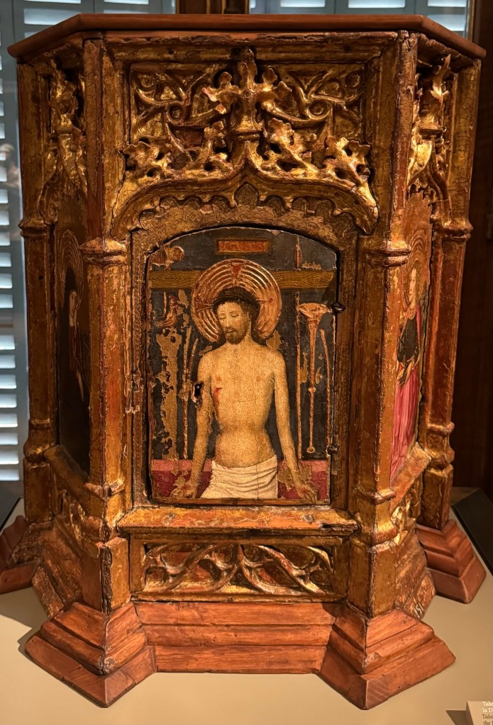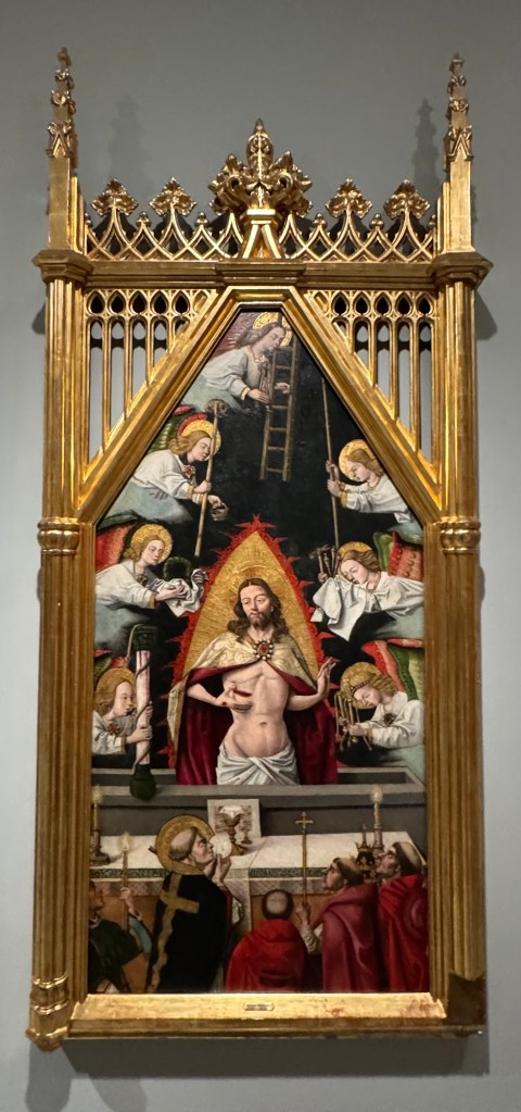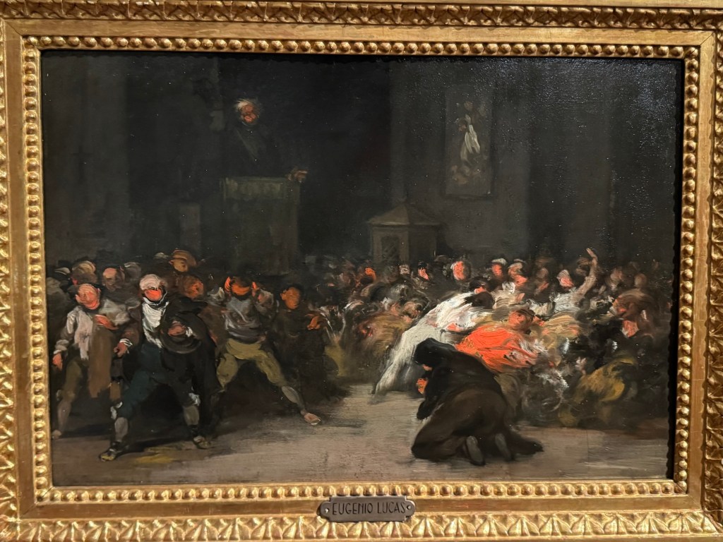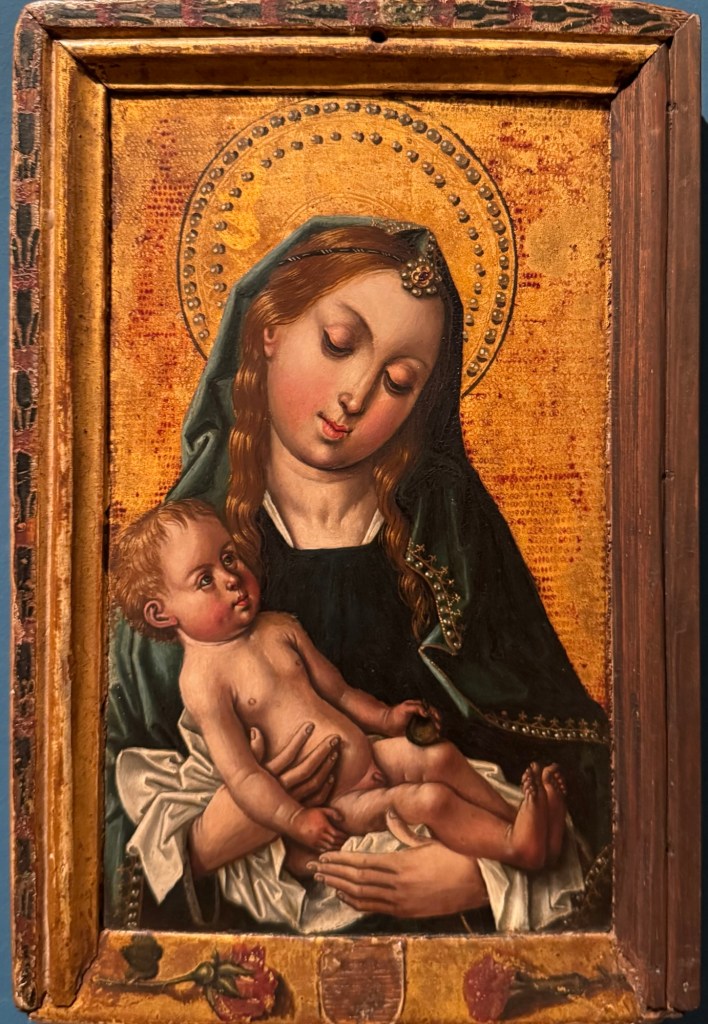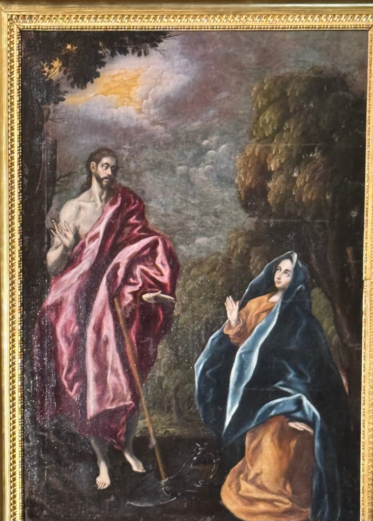 Castilian School, The Visitation c,1495Blastoff de Grañén, The Virgin of MosénEsperandeu, 1438-9Jorge Manuel Theotocópuli, Noli me tangere” 1609-12Velazquez, Head of a Young Woman, 1599-60Francisco Rizi, Saint Augustine, 1665Meléndez, Virgin of the Immaculate Conception, 1700-1733Antonio de Pereda, The Visitation, 1650Cristóbel de Pancorbo, Crown, 1630 & Model for a Tabernacle, 17th cFrederick de Madrazo, Gertrudis Goméz de , Avenalleda, 1857Augustin Esteve, Child with lamb, 1817 and Chest of drawers, 1800Valeriano Dominguex Bécquer, Portrait of a Young Woman 1866Veláquez, IThe Sermon; Thou art Condemned, 1850-70Francisco Lameyer, Gunpowder Game, 1860Velásquez, Self Portrait, 1860Orazio Samachini, The Baptism of Christ, 16th CCrucifix, 17th CBoltraffio or d’Oggiano, Young Christ, 1490-91Grupo de Adriaen Isenbrant, Madonna and Child, 1491-1551Monogramista GB, Annunciation, 16thCPintor Manierista de Amberes, CalvaryQuentin Metsys, Virgin of the Rosary, 16th CBernard an Orley, Madonna and Child 1458-1671El Bosco Hieronimus van Aeken, St John the Baptist, 1495Lucas Cranach, Christ Child triumphant over Sin and Death, 1530-40Lucius Cranach, The Calvary, 16thCRodrigo de Villandrando, Portrait of a Lady, 1600-06Goya, The Witches’ Sabbath, 1797-98Goya, The Witches, 1797-98Venancio Vallmitjana, Diego Velásquez, 1900Goya, The Penitent Magdalen, 1797-1800Castilian School, The Virgin and Child, c1500