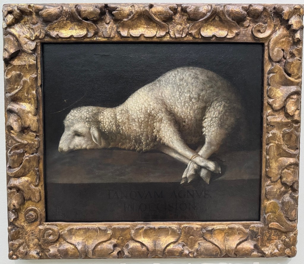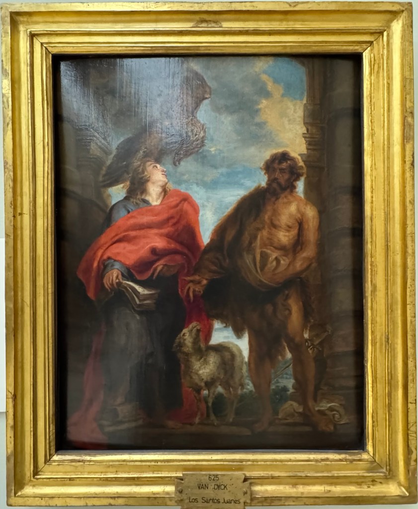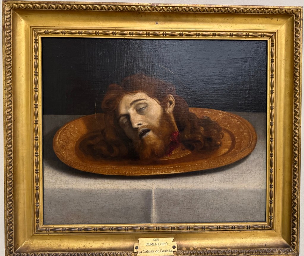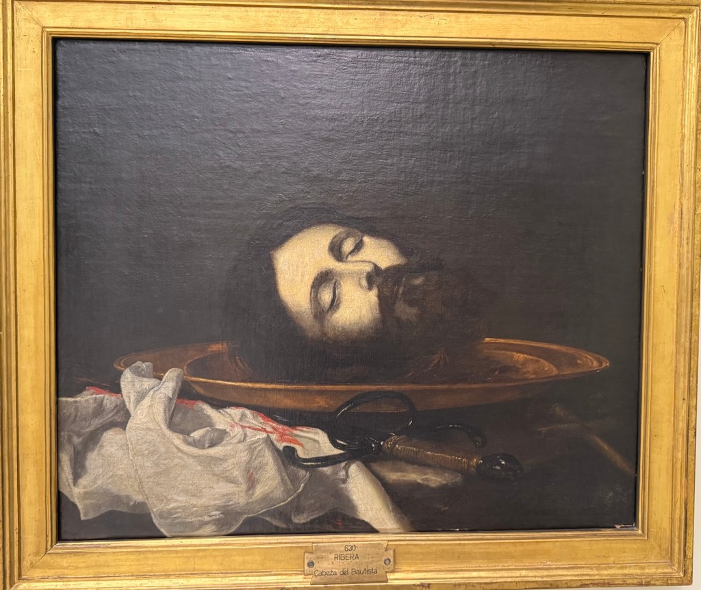 Maítes de Torres, Ss Jerome & Paul adoring Christ, 1711Zurbarán, Still life with lemons, 1640Zurbarán, Agnes Dei, 1639Alonso Canó, Christ on the Cross, 1640Domenichino, Head of John the Baptist, 1640Pompey Leoni, Christ crucified, 1605Cayetano Merchi, Goya, 1795Goya’s Cenotaph in Bordeaux, 1828Rosario Weiss, Portrait of Goya, 1834Goya, The Madhouse, 1746Hans Műelich, Crucifixion, 1538Luis de Morales, Pietá, 1560-70Luis de Morales, Ecco Homo, 1570Martin de Vos, The descent of Christ, 16th century Francisco Rizi, Ecco Homo, 1650-85Anon. Grapes and peacock,1619-31Murillo, St Francis of Assisi in Ecstacy, 1646Juan do, Adoration of the Shepherds, 1645Claude Beissonat, Christ on the Cross, 1675-99Juan Antonio Escalante, Christ carrying the Cross, 16Francisco Herrera, St Peter, 1650José de Ribera, Head of John the Baptist, 1644Murillo, Resurrection of the Lord, 1650-60Antonio van Dyck, The Holy Saints John, 1620