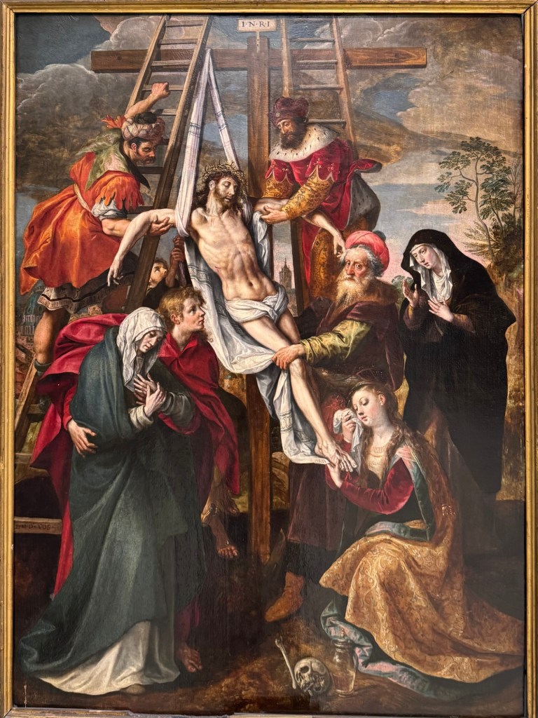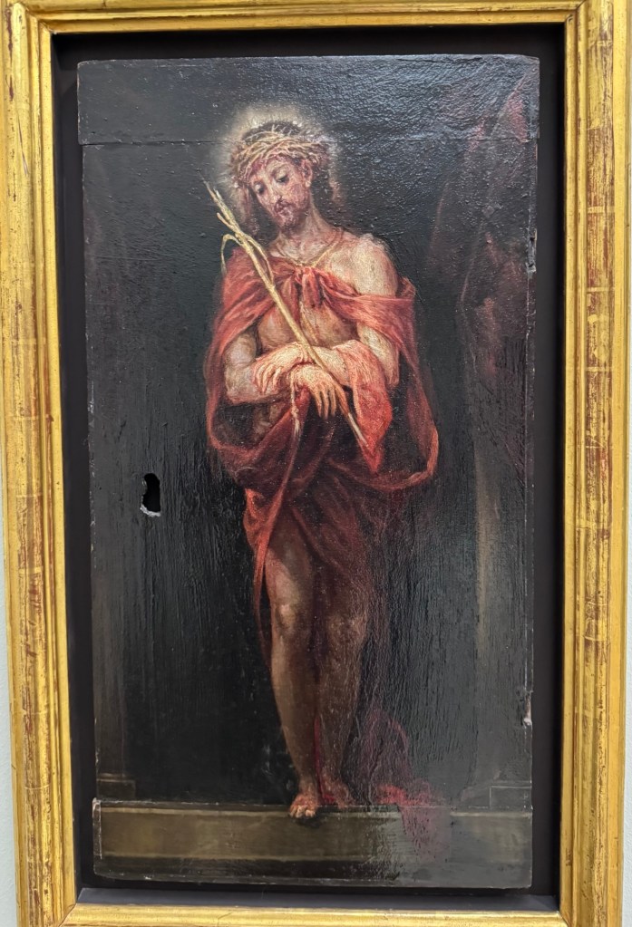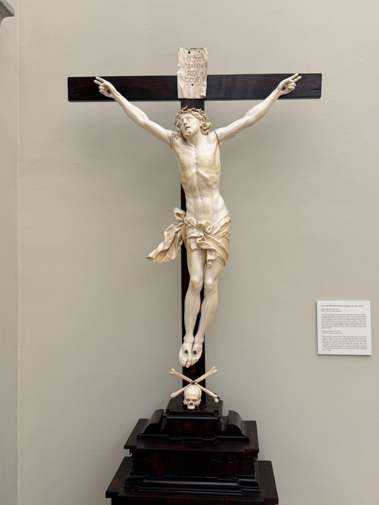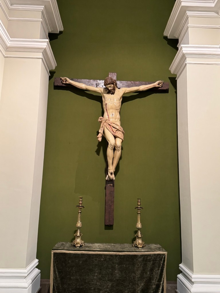 Maítes de Torres, Ss Jerome & Paul adoring Christ, 1711Zurbarán, Still life with lemons, 1640Zurbarán, Agnes Dei, 1639Alonso Canó, Christ on the Cross, 1640Domenichino, Head of John the Baptist, 1640Pompey Leoni, Christ crucified, 1605Cayetano Merchi, Goya, 1795Goya’s Cenotaph in Bordeaux, 1828Rosario Weiss, Portrait of Goya, 1834Goya, The Madhouse, 1746Hans Műelich, Crucifixion, 1538Luis de Morales, Pietá, 1560-70Luis de Morales, Ecco Homo, 1570Martin de Vos, The descent of Christ, 16th century Francisco Rizi, Ecco Homo, 1650-85Anon. Grapes and peacock,1619-31Murillo, St Francis of Assisi in Ecstacy, 1646Juan do, Adoration of the Shepherds, 1645Claude Beissonat, Christ on the Cross, 1675-99Juan Antonio Escalante, Christ carrying the Cross, 16Francisco Herrera, St Peter, 1650José de Ribera, Head of John the Baptist, 1644Murillo, Resurrection of the Lord, 1650-60Antonio van Dyck, The Holy Saints John, 1620