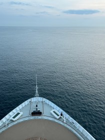 It couldn’t be a nicer evening for my final one on board Queen Anne. Calm, mild and the evening light lingers ng so that I could capture some elements of the ship which I hadn’t explored during our last full