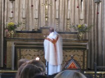 That’s Beryl in the foreground, pacing up and down the pews, waiting for the 8.30 am Morning Prayer service at ‘St Paul’s Within The Walls’ to commence. It was led by Dominic, the liturgical assistant, who has a holiday home