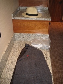The Qantas pajamas developed a life of their own. Comfy – yes; attractive – not so when viewed in the mirror of an aircraft toilet where you have to adopt the posture of a hunchback just to gain access. Nonetheless